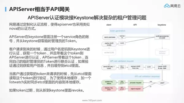 众所周知,Kubernetes 的租户管理相对比较弱,尤其是对于公有云场景,复杂的租户关系的管理,我们只要定制化 API Server,对接 Keystone,就可以管理复杂的租户关系,而不用管其他的组件。