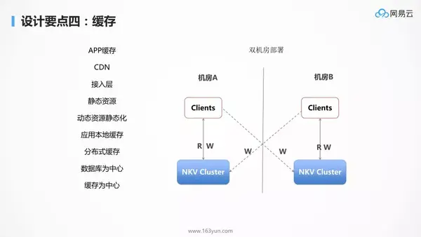 另外一个就是双机房的部署,DDB 开发了一个数据运河 NDC 的组件,可以使得不同的 DDB 之间在不同的机房里面进行同步,这时候不但在一个数据中心里面是分布式的,在多个数据中心里面也会有一个类似双活的一个备份,高可用性有非常好的保证。