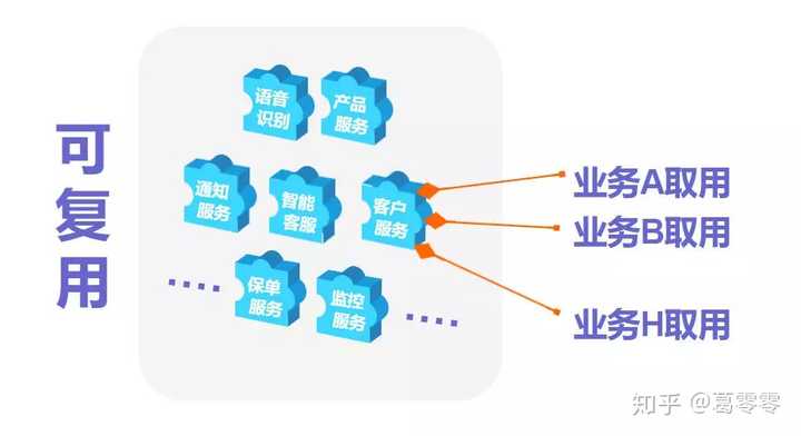 中台提供的服务是应该可以即取即用的。不仅如此,这次用完,下次还来。业务A用了,业务B也来用。一个中台提供出的公用服务的价值高低,是“可用”和“可复用”的区别。