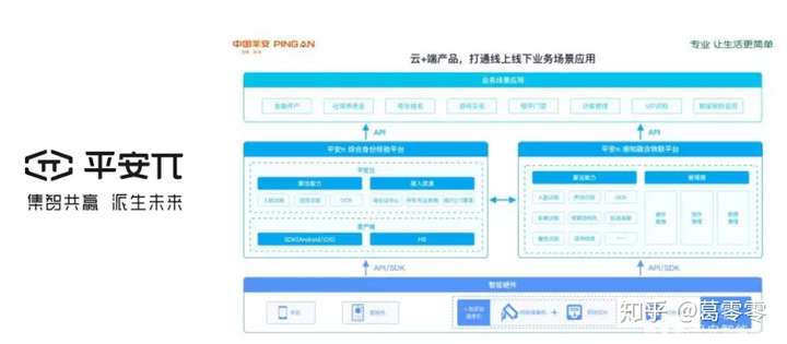 2019年4月,平安科技的平安智能认知团队正式推出全新品牌LOGO——平安π。平安π通过“综合身份核验平台”和“感知物联融合平台”两大平台,向下融合多种视觉、听觉的算法能力,向上提供业务赋能(云服务和端服务)。平安π从单一的算法服务升级到“云+端”的多维服务,有效结合了算法、数据、设备,以满足“金融开户、社保养老金、考生报名、游戏实名”等细分领域和细分场景的服务能力。